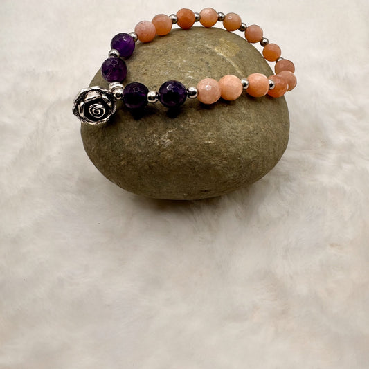 Peach Moonstone & Amethyst Bracelet